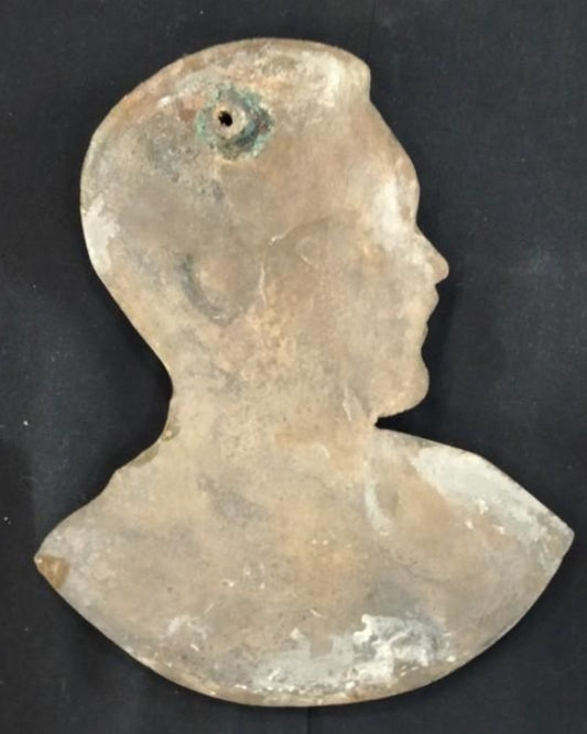 German WWII silvered metal plate featuring a Wehrmacht soldier.