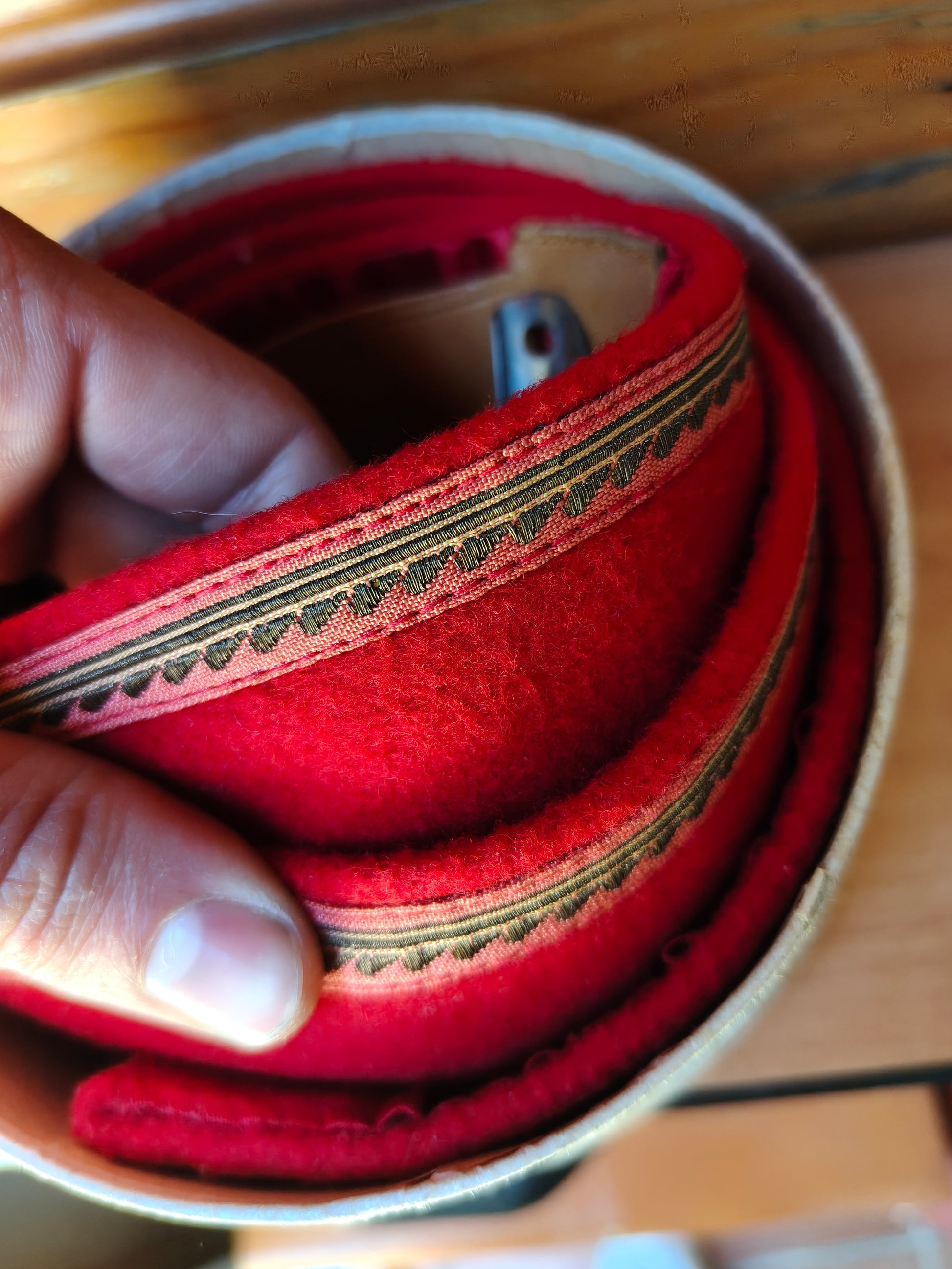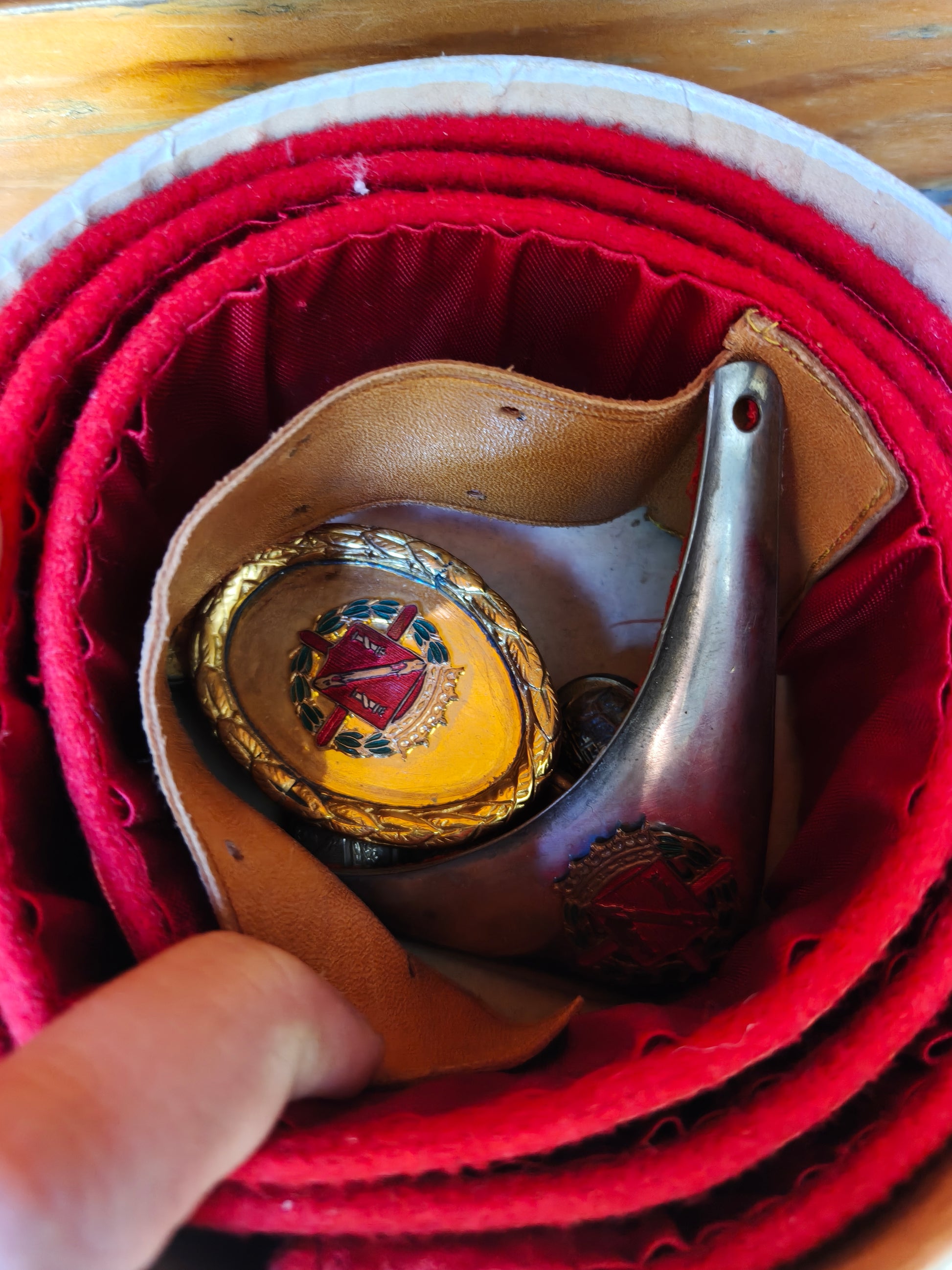 Original incluye cinturón con hebilla con escudo de la casa del Pardo Franco y Gola. Original de época. Todo ello en estuche. Muy raro